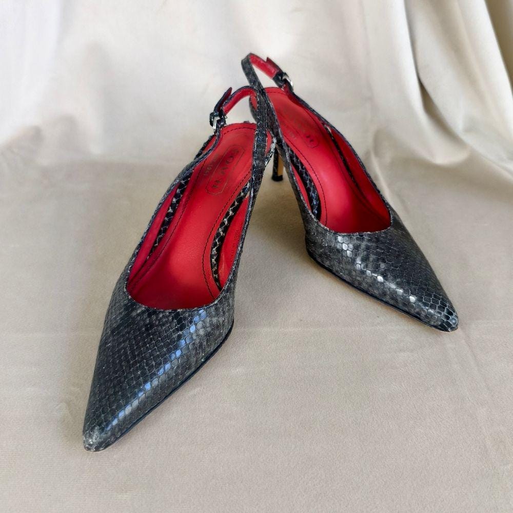 Coach Elegant Gray Snakeskin Pointed Toe Slingback Heels