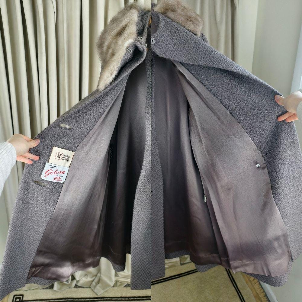 Vintage 50s/60s Gray Wool Swing Coat with Mink Collar