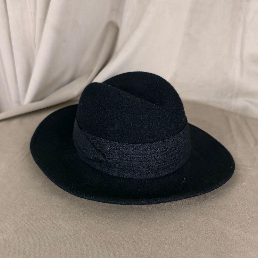 This elegant black fedora hat is a timeless accessory for any wardrobe. Perfect for adding a touch of sophistication to your outfit.