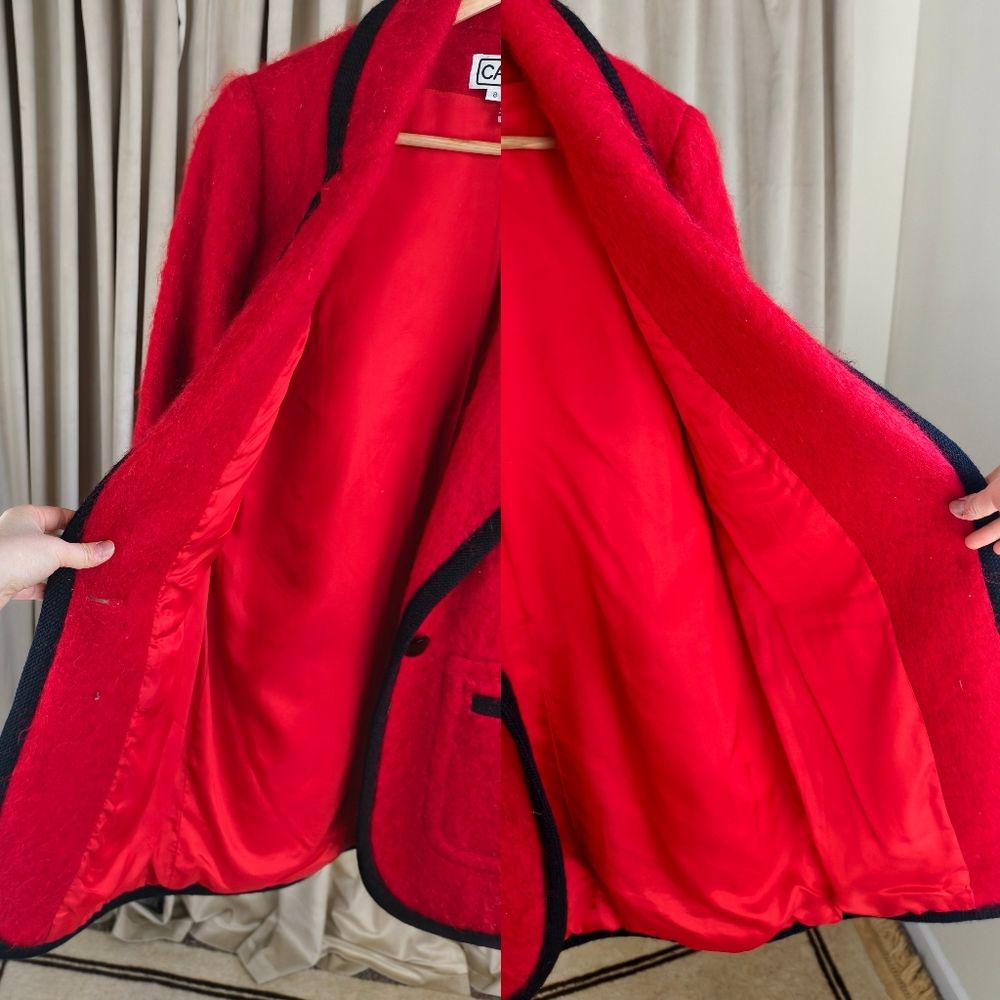 Vintage Carlisle Red Mohair Blazer with Black Trim