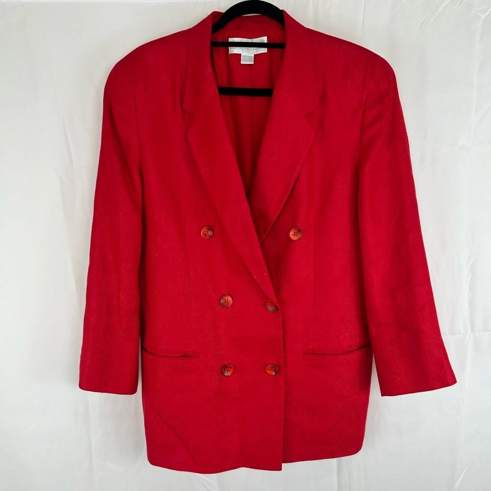 Vintage Liz Claiborne Pertitte Red 100% Linen Double Breasted Blazer