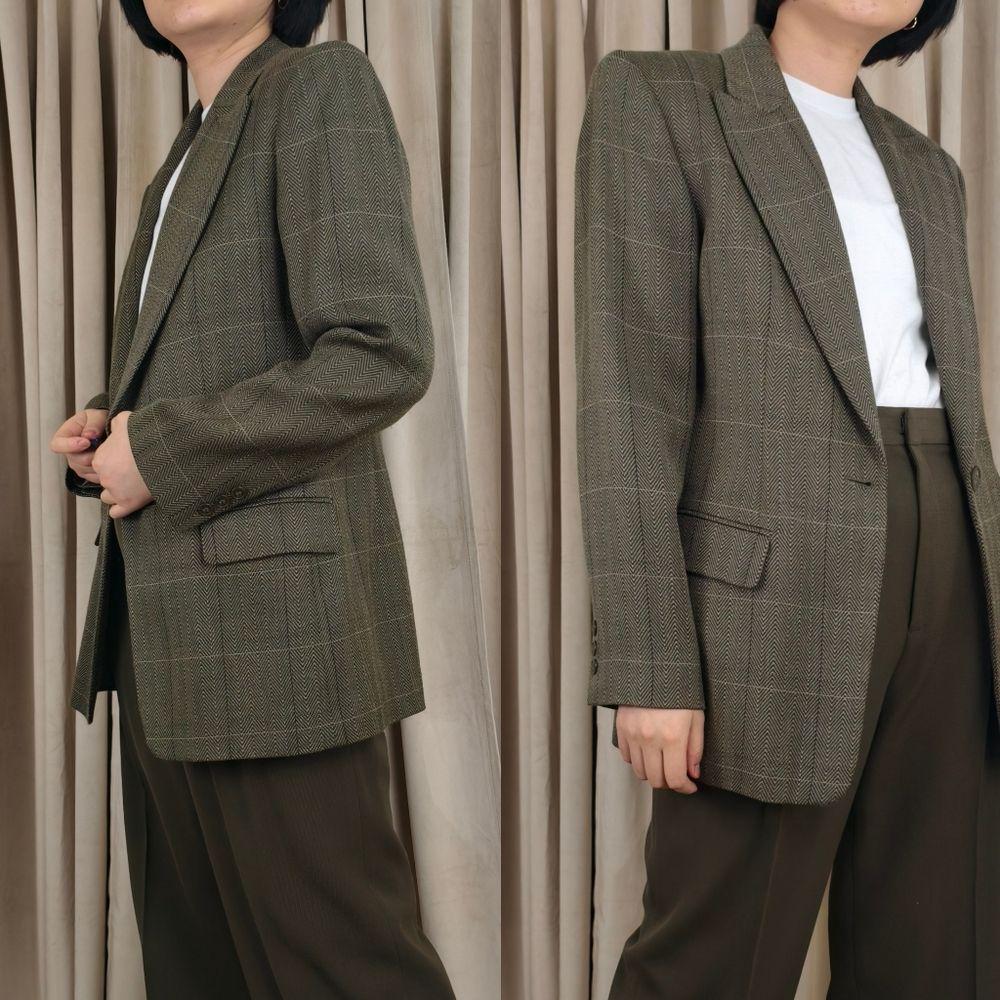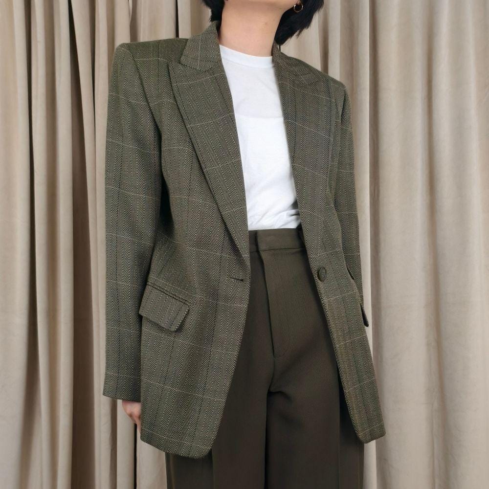 Vintage Wool Ellen Tracy Green Herringbone and Plaid Wool Blazer